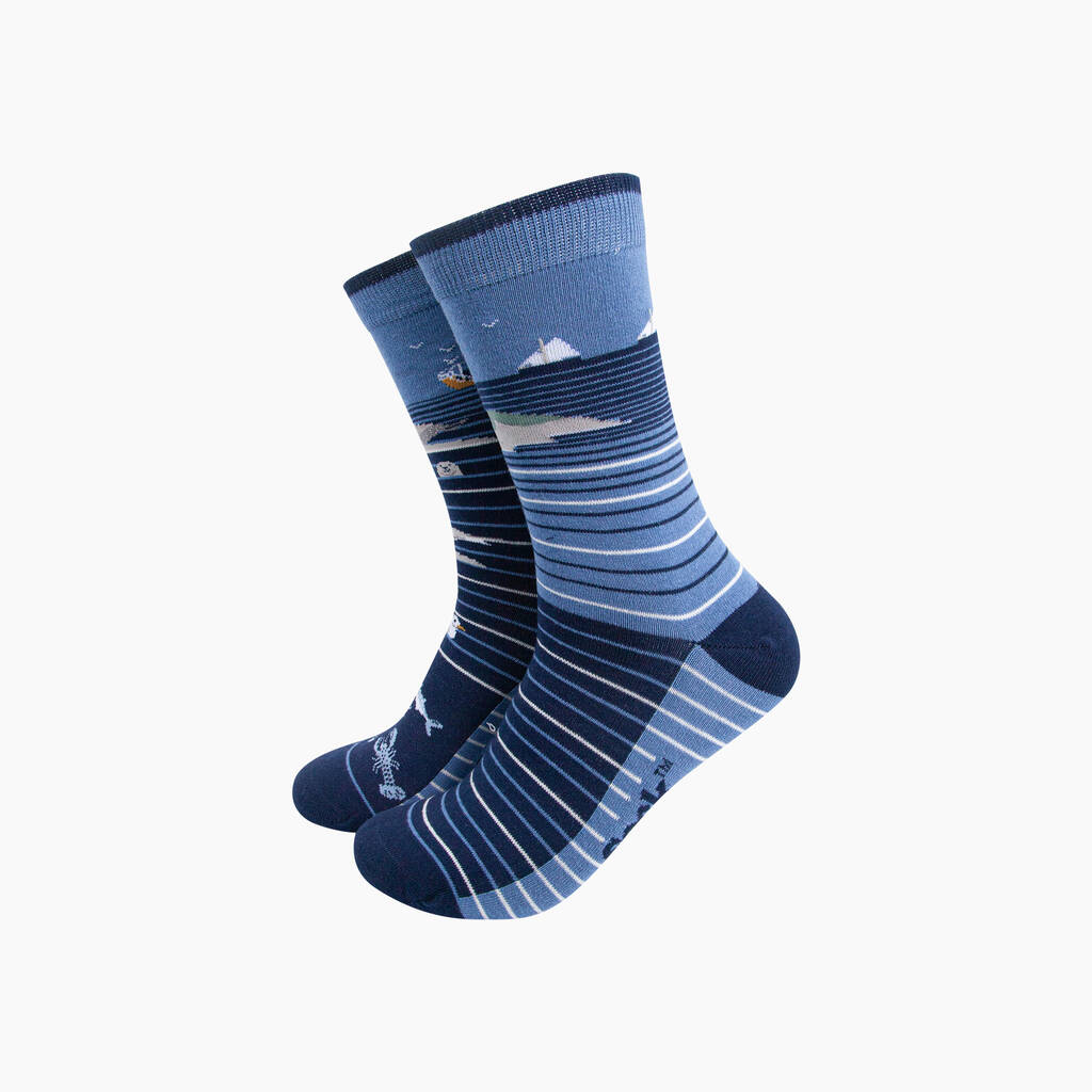 Coastline Stripes Combed Cotton Odd Socks In Blue