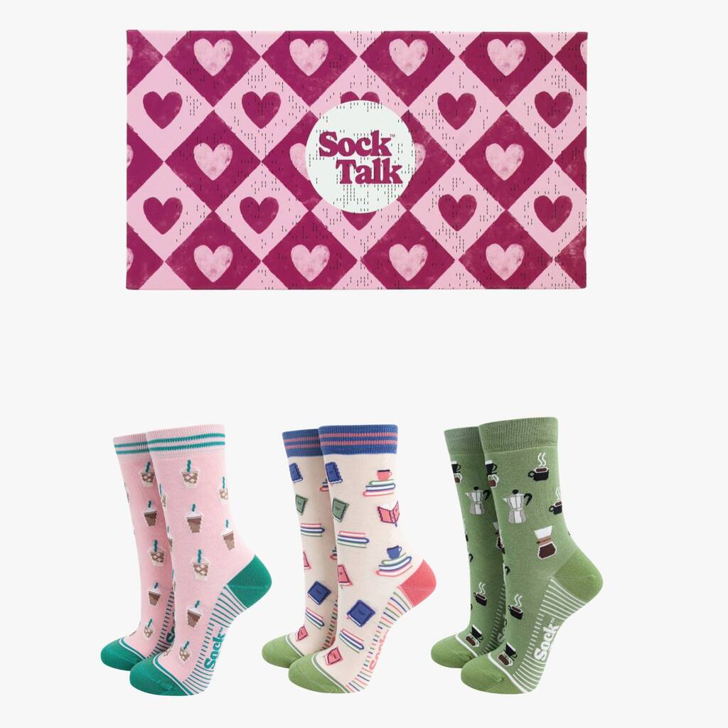 Coffee And Books Bamboo Socks Gift Set For Women