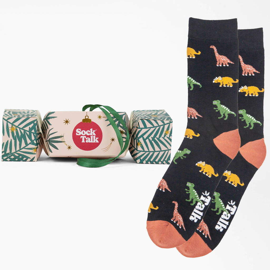 Colourful Dinosaurs Bamboo Socks Men's Christmas Cracker Hanging Tree Decoration