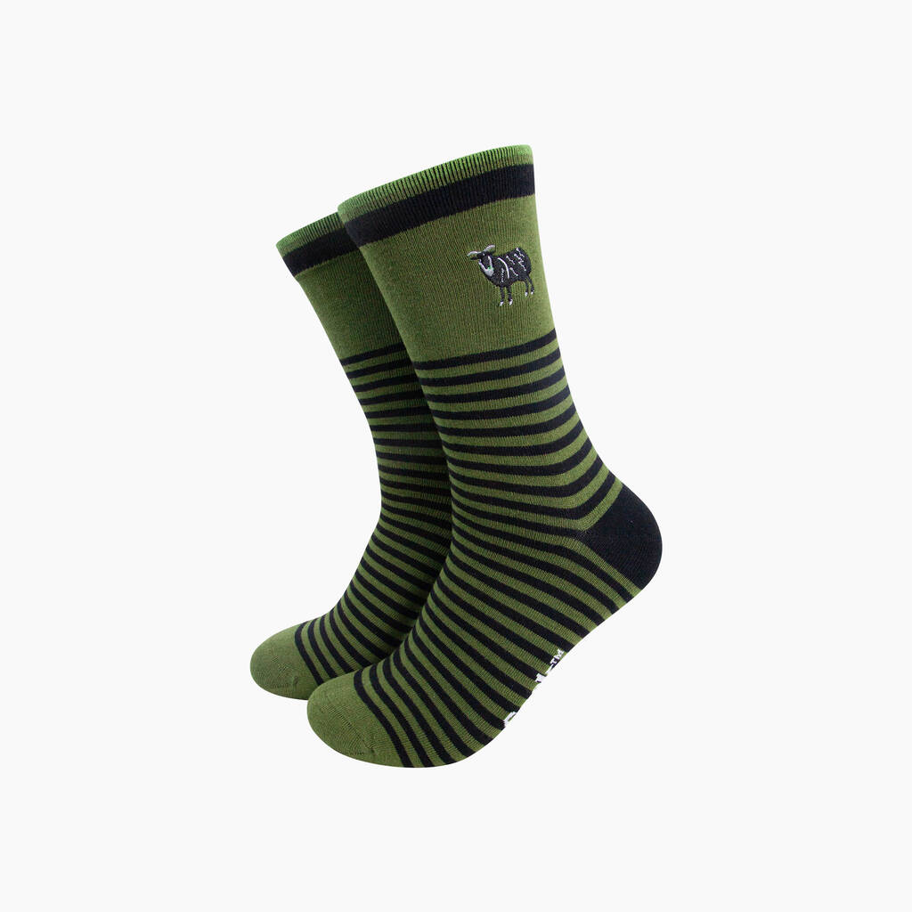 Embroidered Black Sheep Striped Combed Cotton Socks In Green
