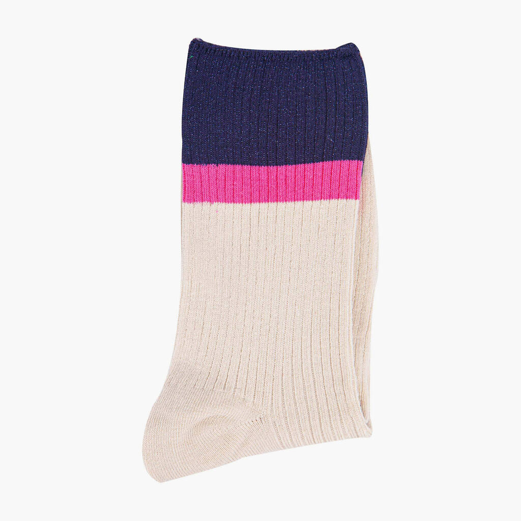 Glitter Mid Calf Ribbed Cotton Boot Socks Contrast Cuff Cream Navy