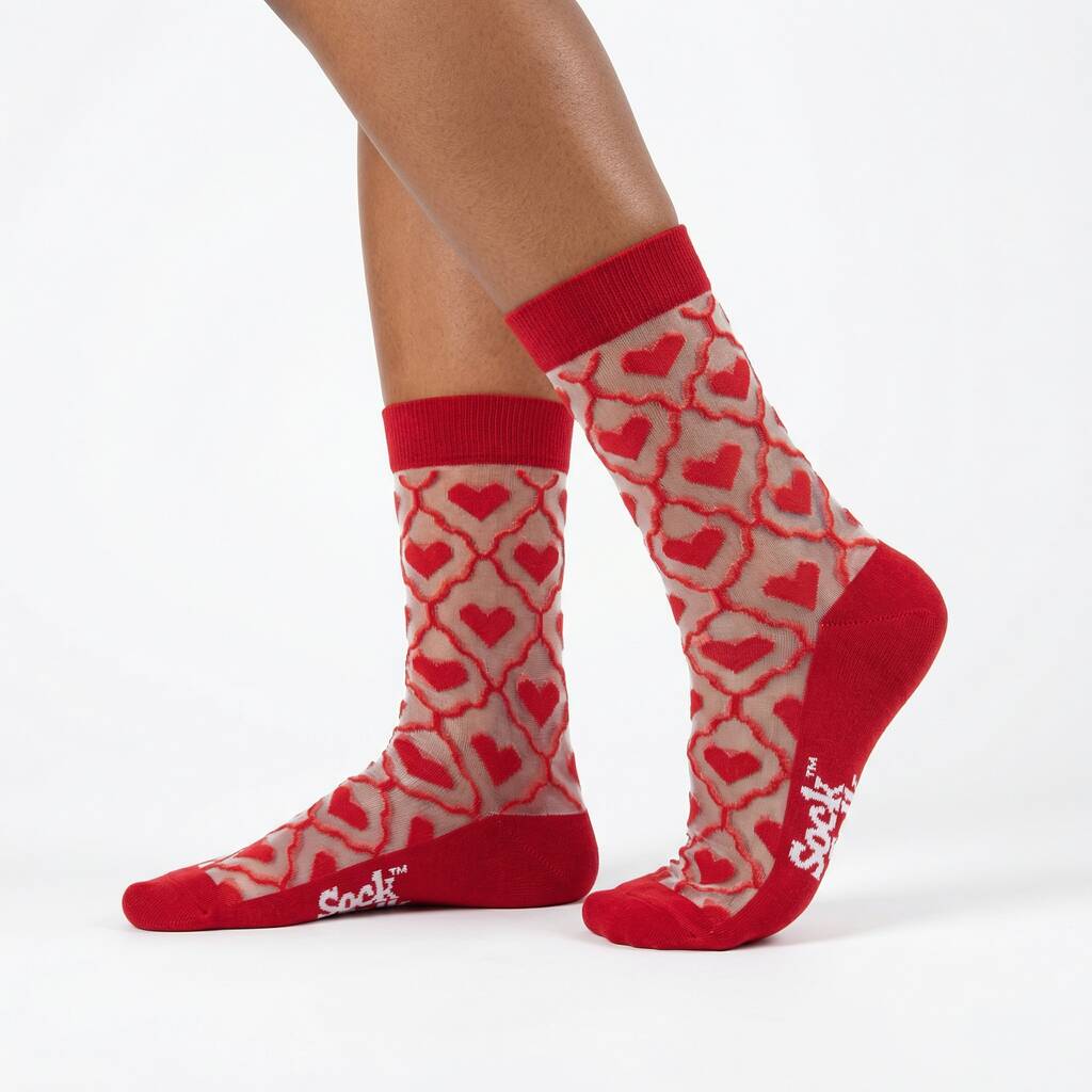 Heart Ribbon Combed Cotton Sheer Pop Socks In Red