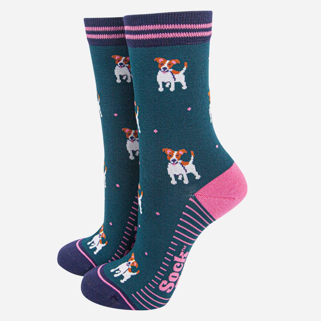 Jack Russell Terriers Dogs Bamboo Socks Women's Green