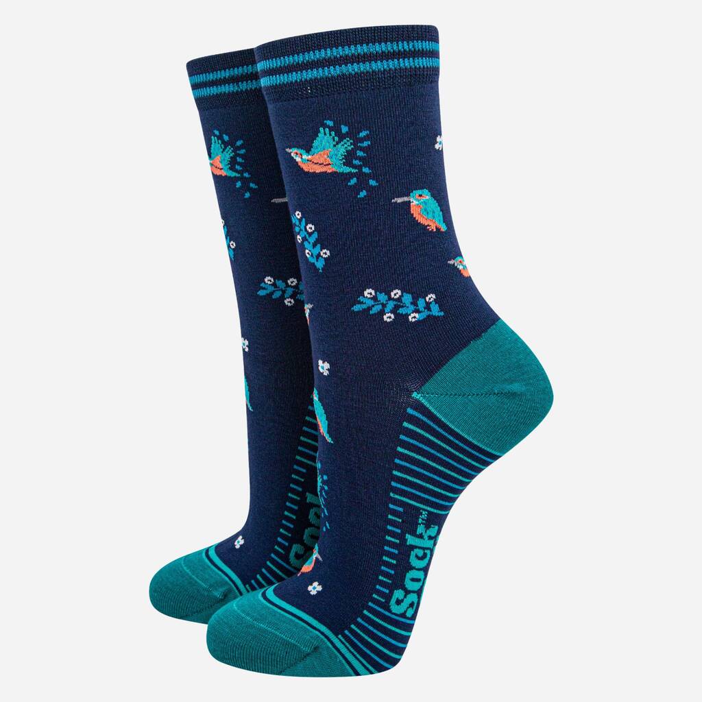 Kingfisher Birds Bamboo Socks Women's Navy Blue