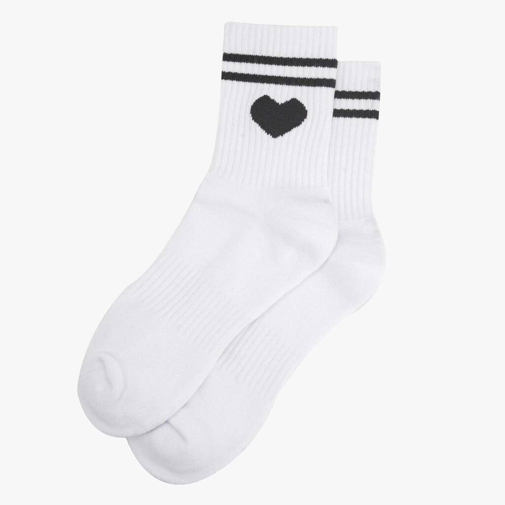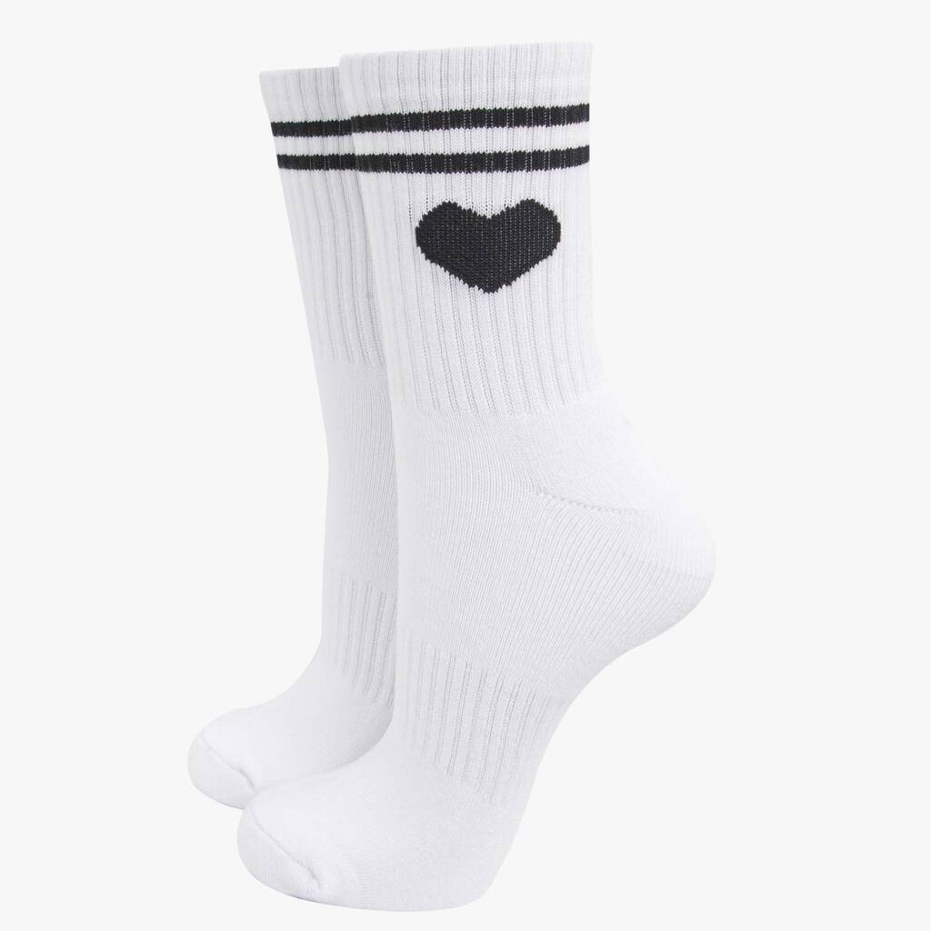 Love Heart Sporty Ribbed Cotton Ankle Socks Women's White