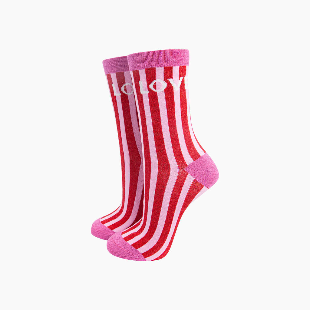Love Stripes Combed Cotton Glitter Socks In Red/Pink