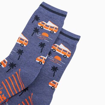 Men's Bamboo Socks Denim Blue Campervan Beach