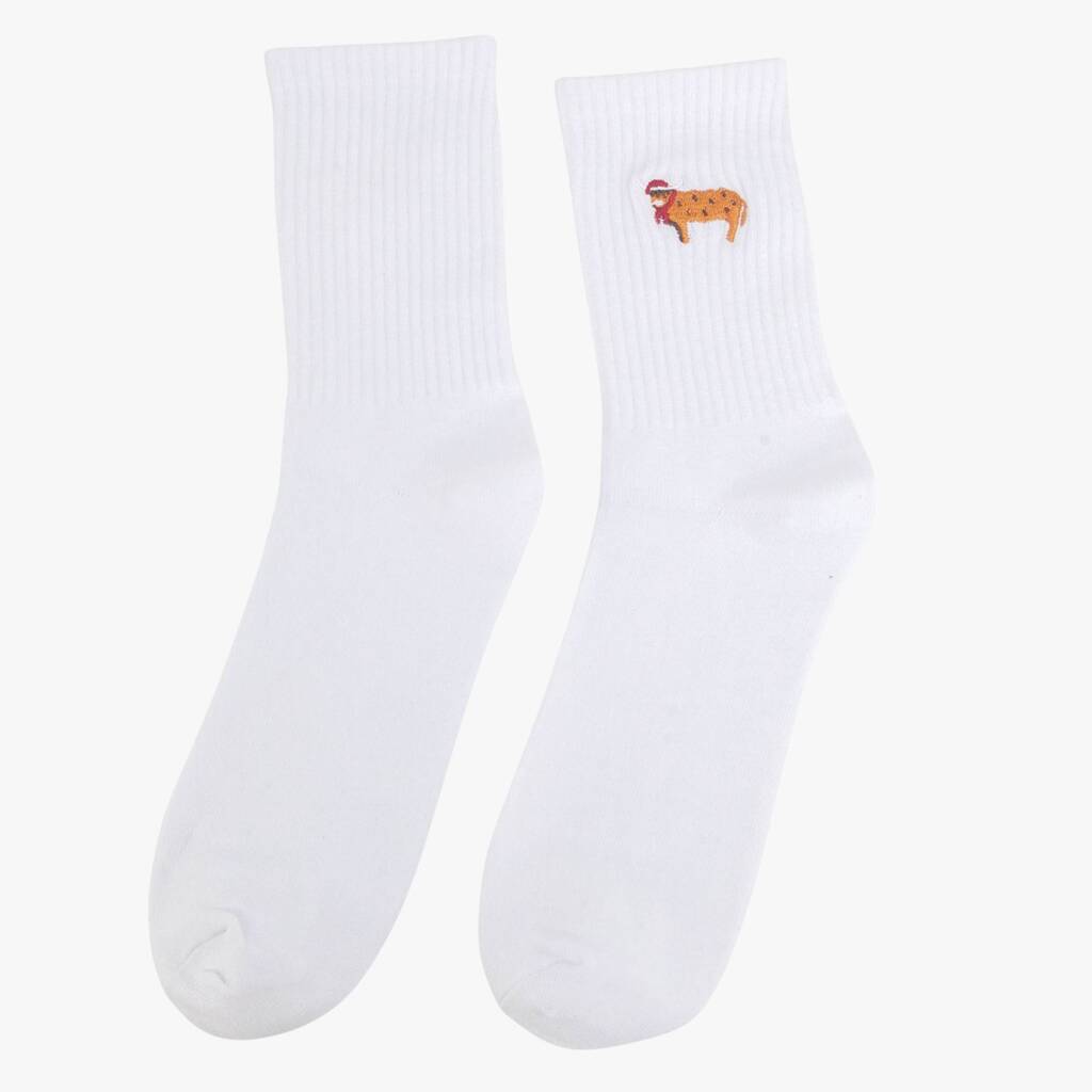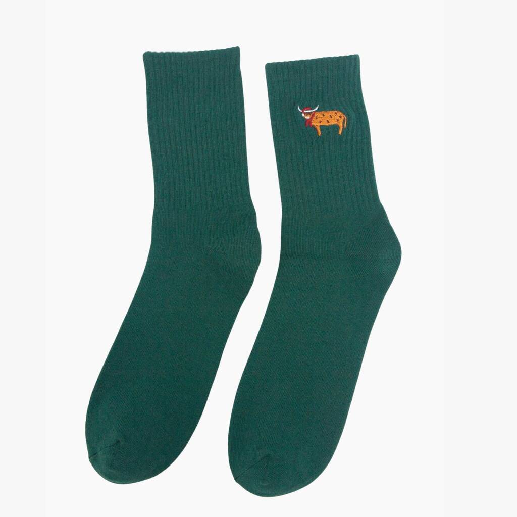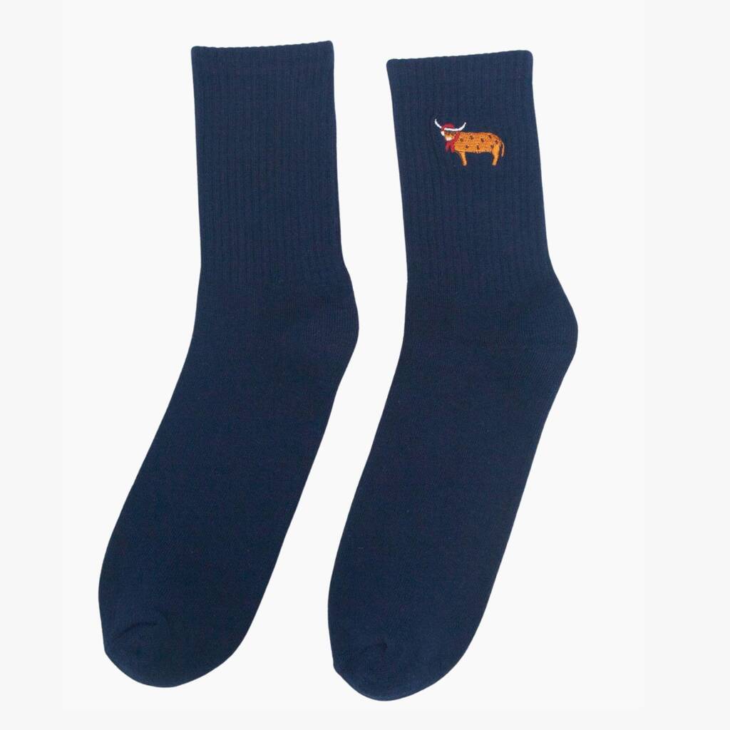 Men's Christmas Highland Cow Embroidered Cotton Socks Five Pack