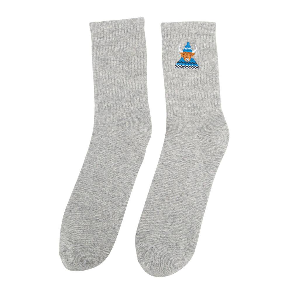 Men's Highland Cow Embroidered Cotton Socks Three Pack