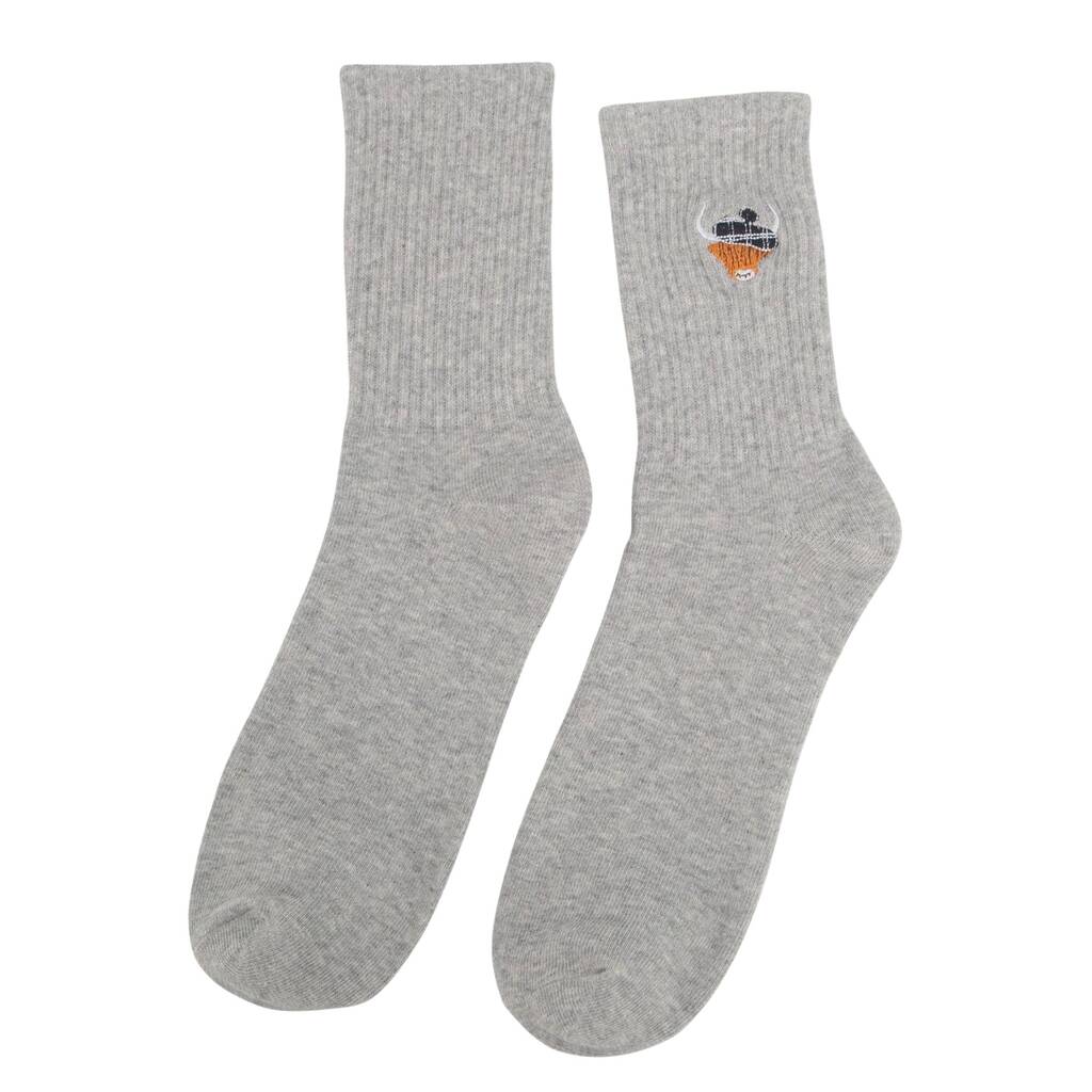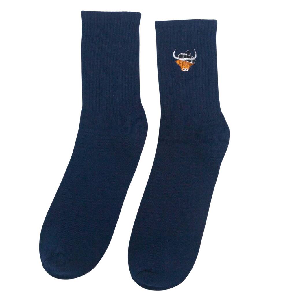 Men's Highland Cow Tartan Embroidered Cotton Socks Four Pack