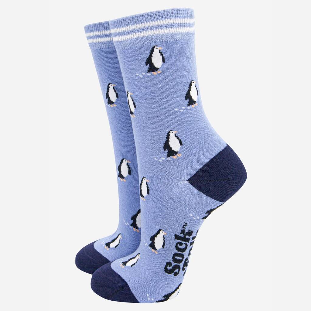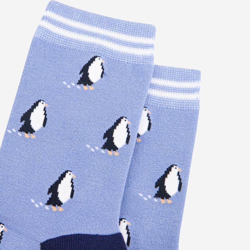 Penguins Christmas Bamboo Ankle Socks Light Blue