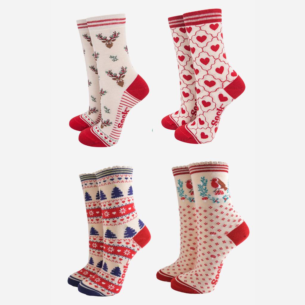 Rainbow Multi Bamboo Socks Christmas Gift Set Four Pack