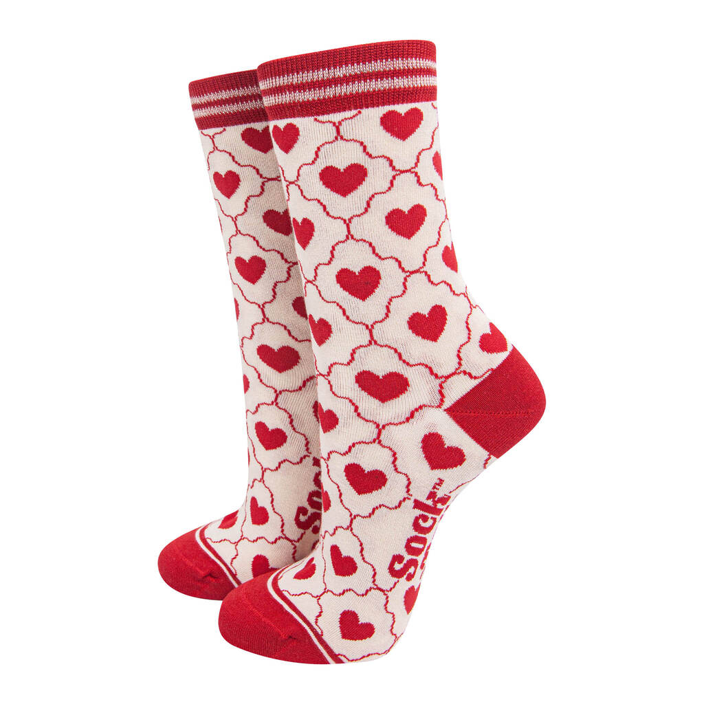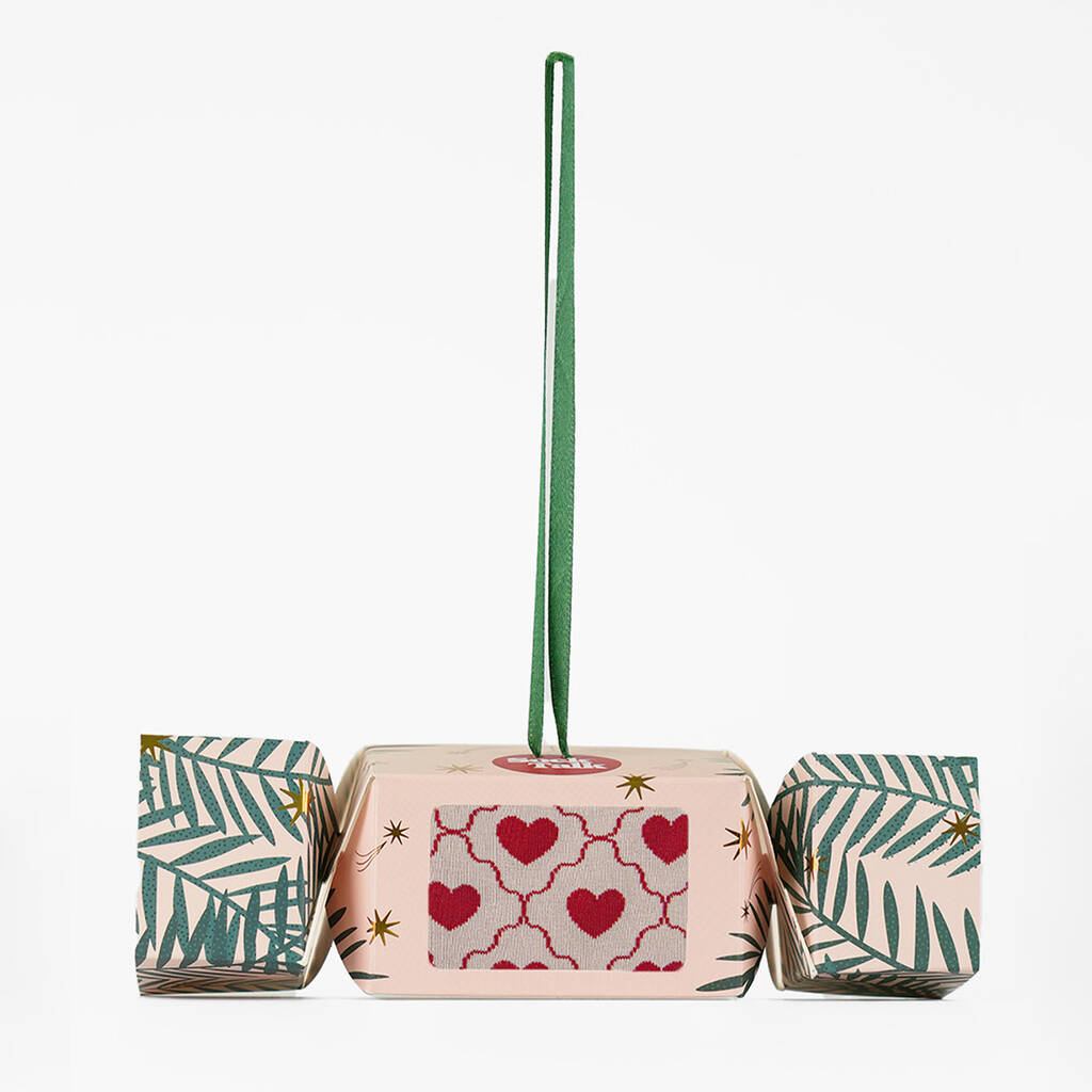 Red Hearts Bamboo Socks Women's Christmas Cracker Hanging Tree Decoration