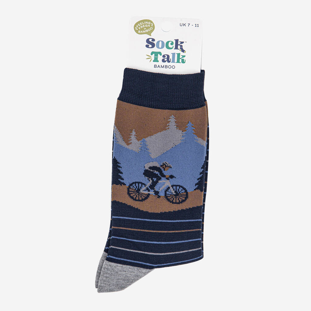 Striped Mountain Biking Bamboo Socks Men's Navy Blue