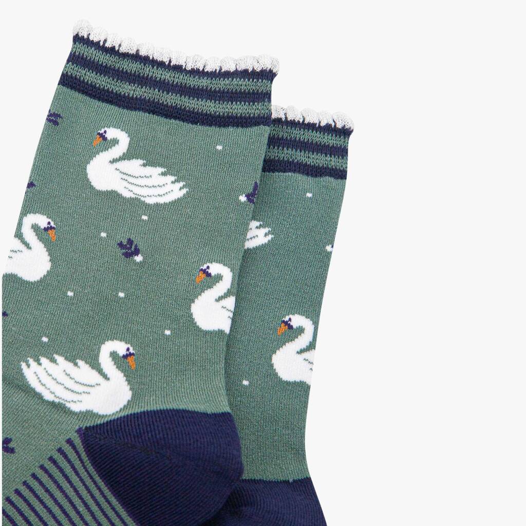 Swans Swimming Women's Bamboo Ankle Socks Sage Green