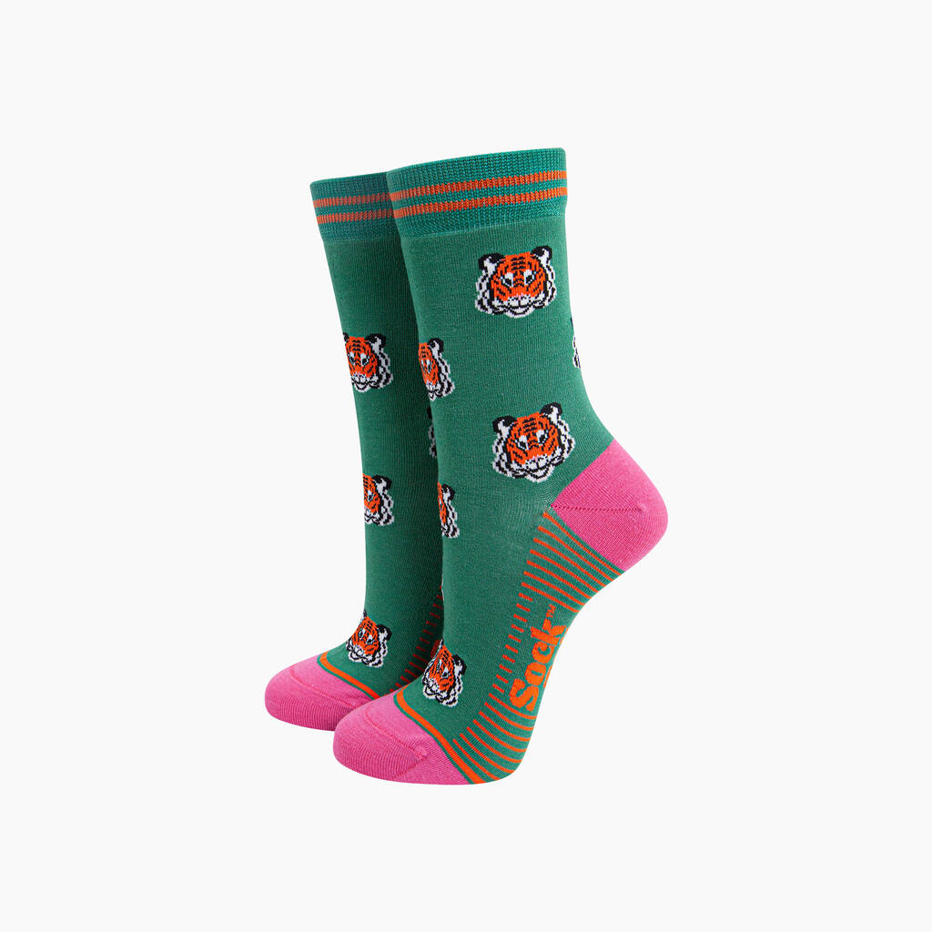 Tiger Faces Bamboo Socks In Green