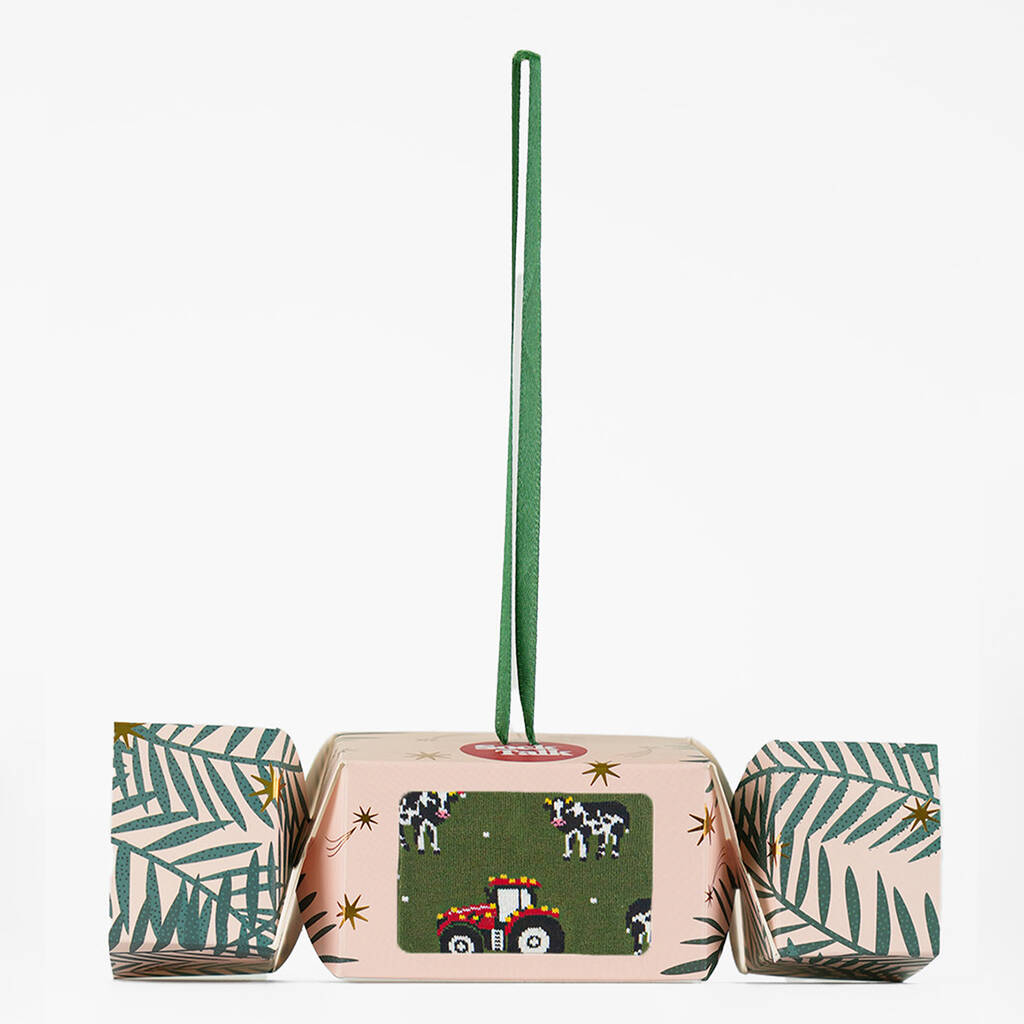 Tractor Cows Santa Bamboo Socks Men's Christmas Cracker Hanging Tree Decoration