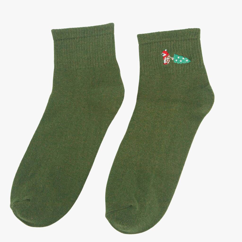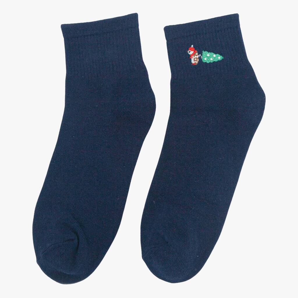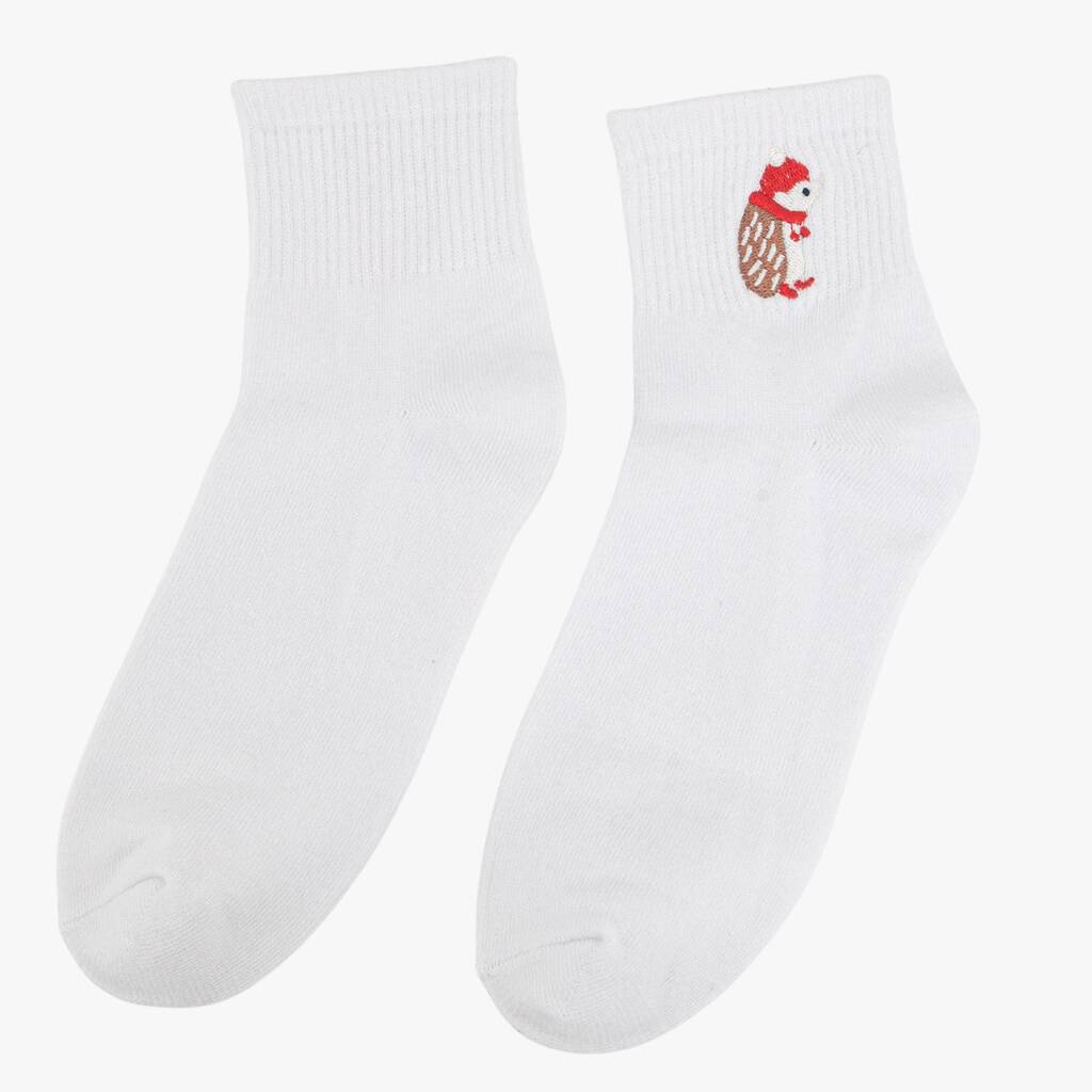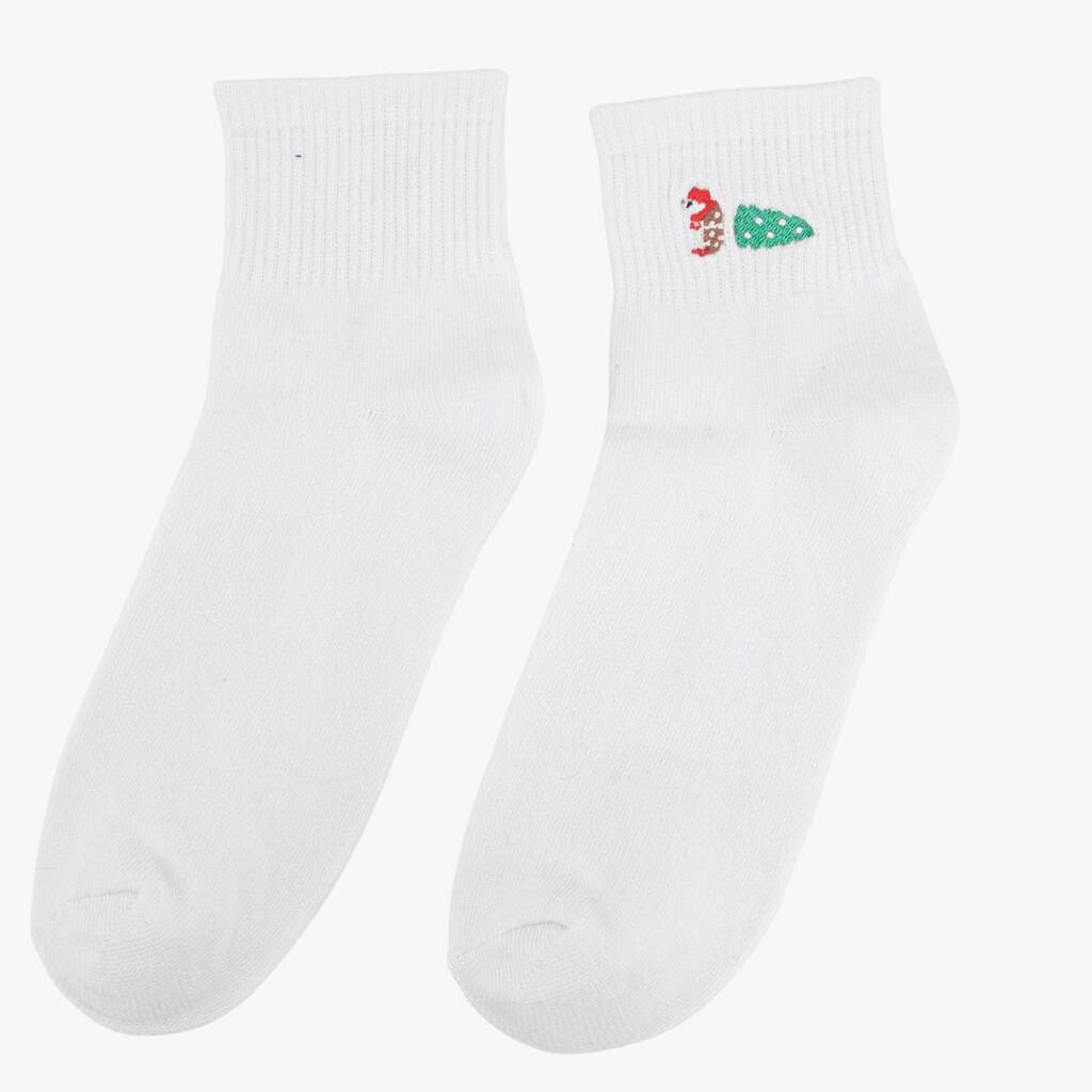 Women's Christmas Hedgehog Embroidered Cotton Ankle Socks Five Pack