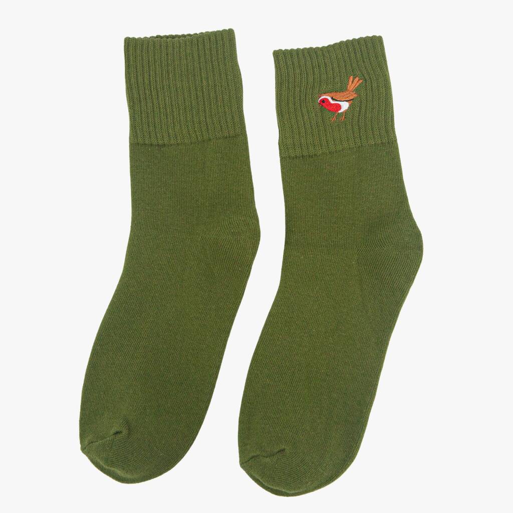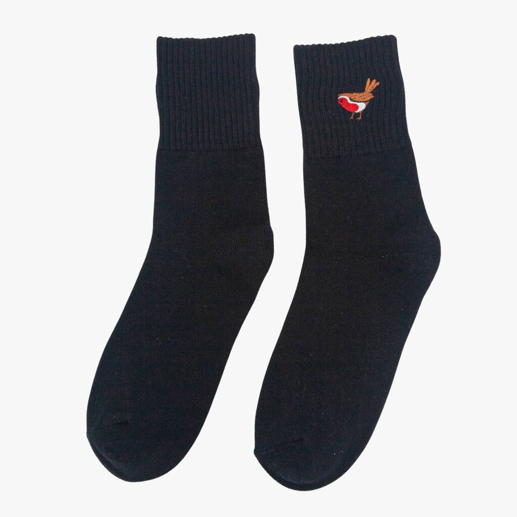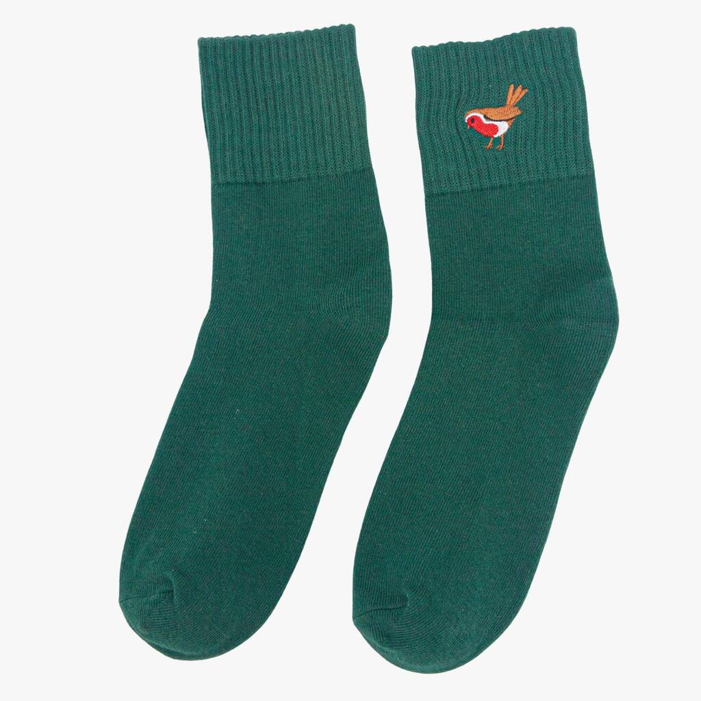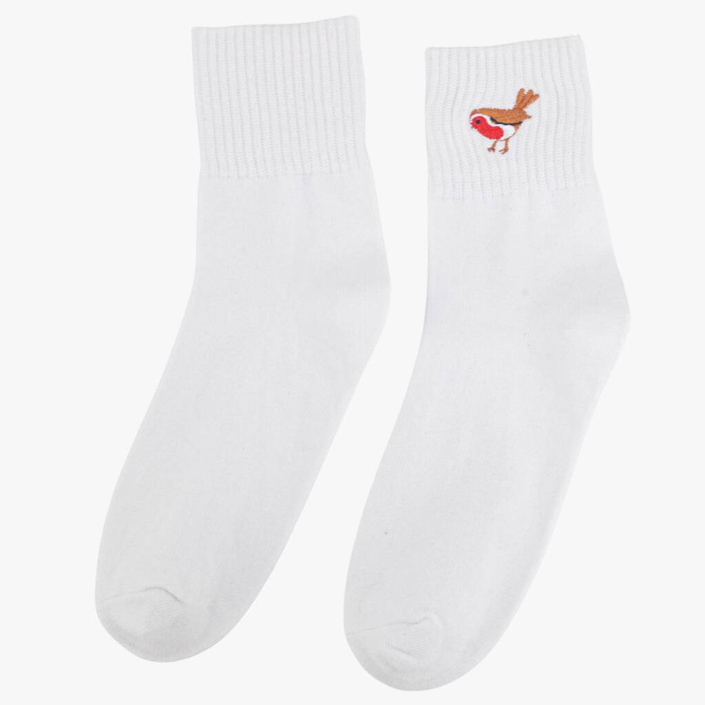 Women's Red Robin Embroidered Christmas Socks Five Pack