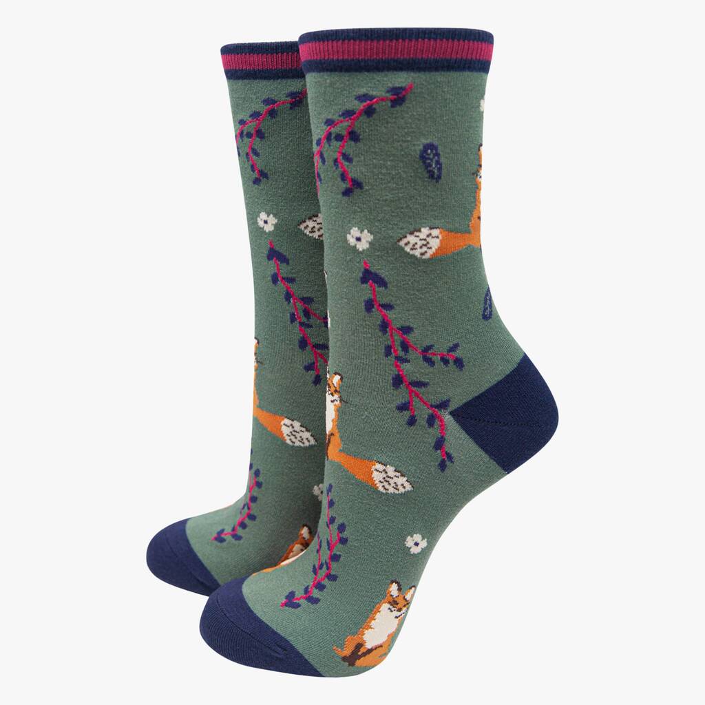 Woodland Animals Fox Squirrel Women's Bamboo Socks Gift Box