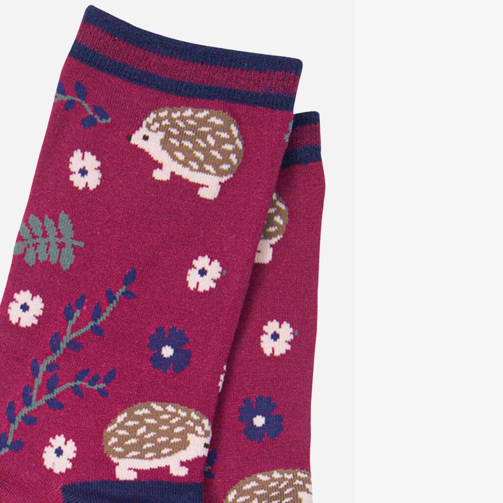 Woodland Hedgehogs Women's Bamboo Ankle Socks Burgundy