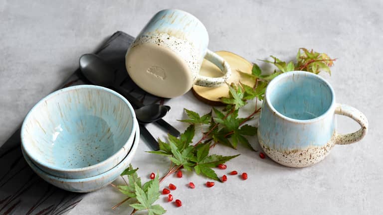 Each of our pieces start out as a ball of stoneware clay. Each clay ball gets wedged by hand and either thrown on a traditional potter's wheel or hand built to create its form. The bottom of each piece is then turned and proudly stamped with our logo before being left to dry for up to a week. Once bone dry, the pieces are carefully placed into the kiln and fired to high temperatures exceeding 1200 degrees celsius. This part of the process is irreversible as it turns the clay into pottery. Once cooled, we then brush on our glaze combinations by hand before placing them back into the kiln for a second high temperature firing, which is where the magic happens. The glaze takes on a life of its own at melting temperature and fuses to the pottery, making them waterproof and functional.