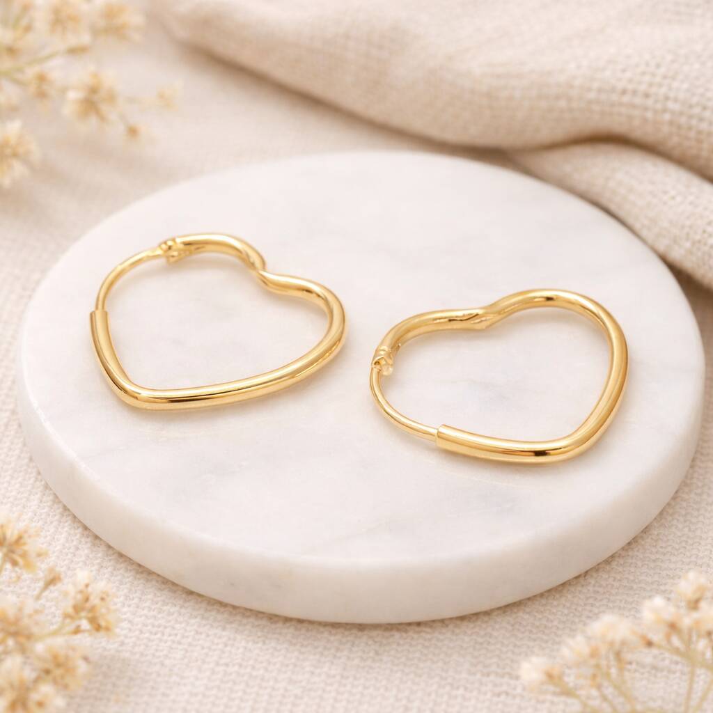 Gold Plated Sterling Silver Heart Hoop Sleeper Earrings – 22mm