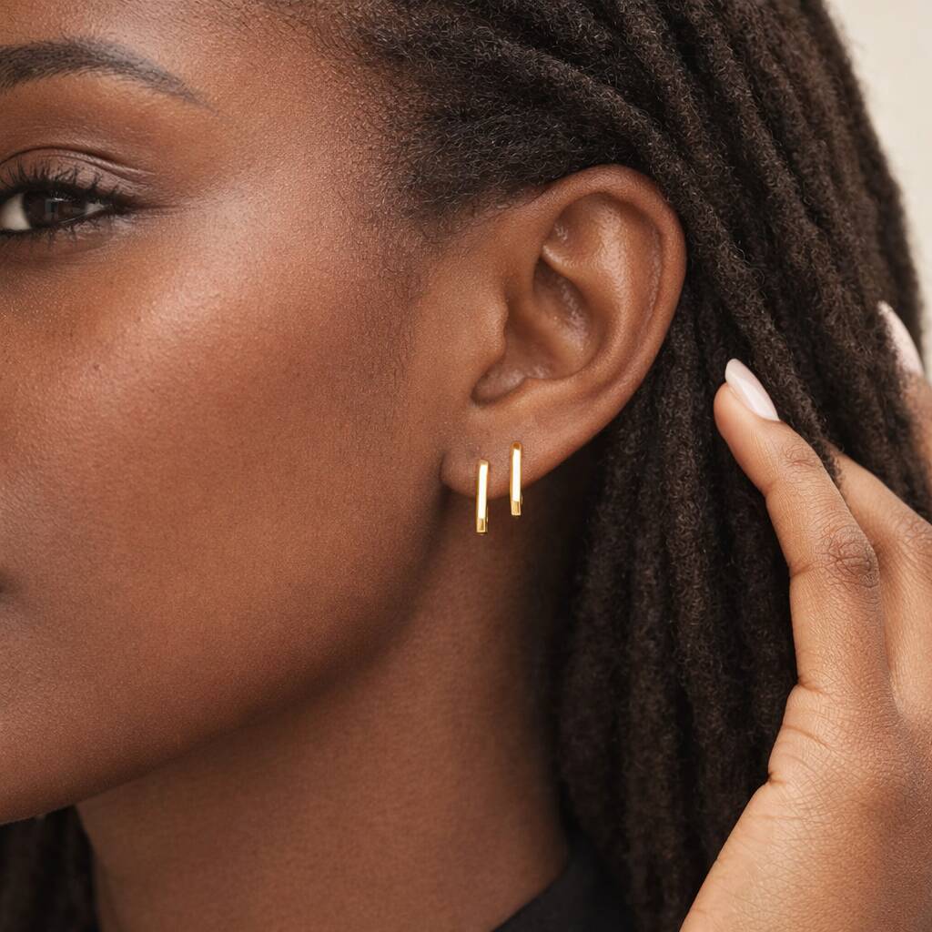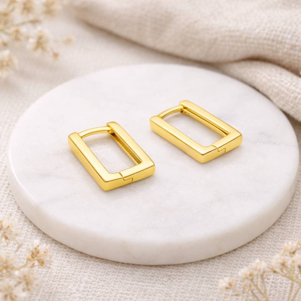 Gold Plated Sterling Silver Rectangle Huggie Hoop Earrings – 13mm X 9mm