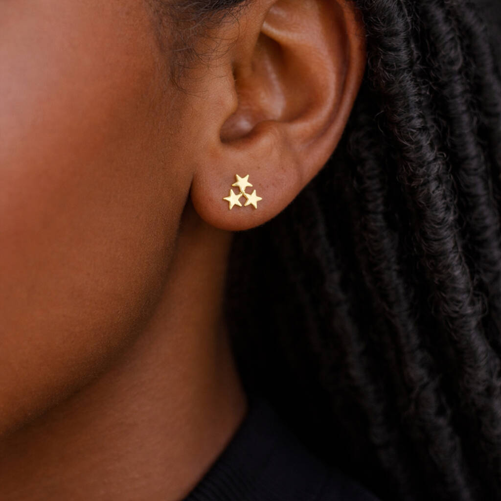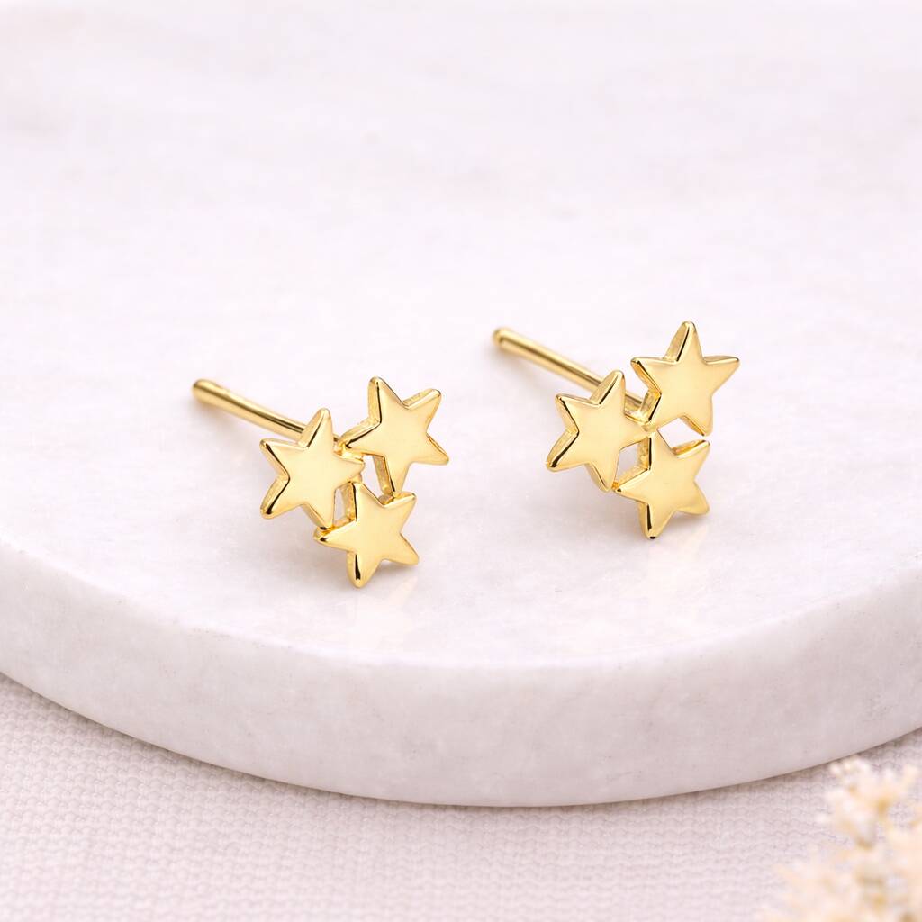 Gold Plated Sterling Silver Galaxy Star Stud Earrings – 8mm
