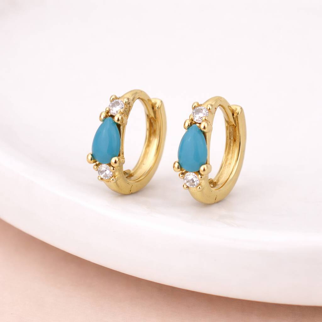 Gold Plated Sterling Silver Turquoise Huggie Hoop Earrings – 10mm