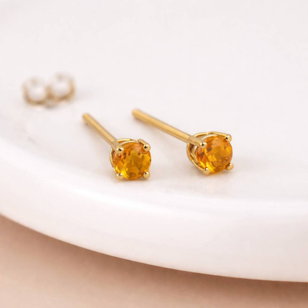 Handcrafted November birthstone stud earrings made from solid 375 9ct yellow gold and set with genuine citrine gemstones
