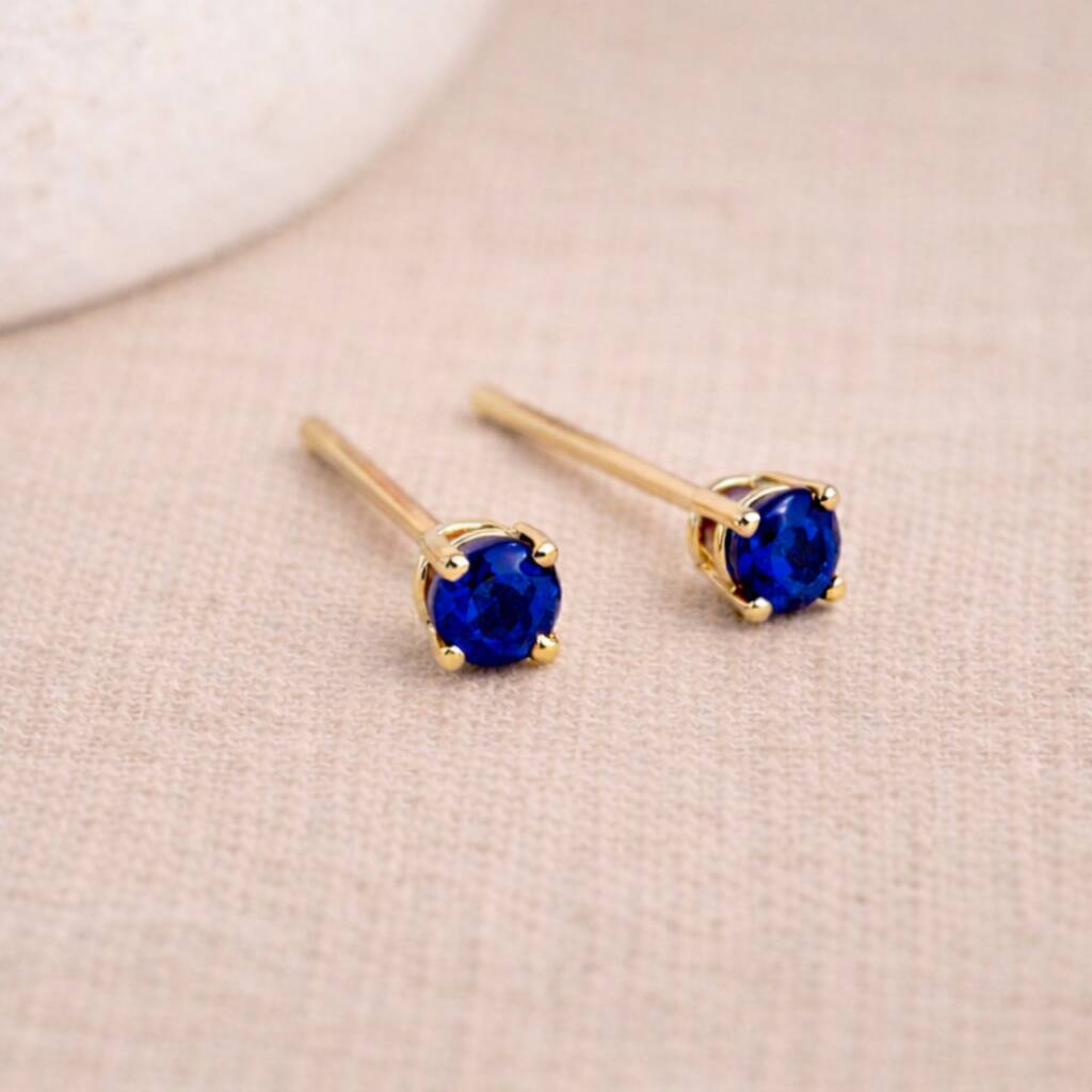 Handcrafted September birthstone stud earrings made from solid 375 9ct yellow gold and set with genuine sapphire gemstones