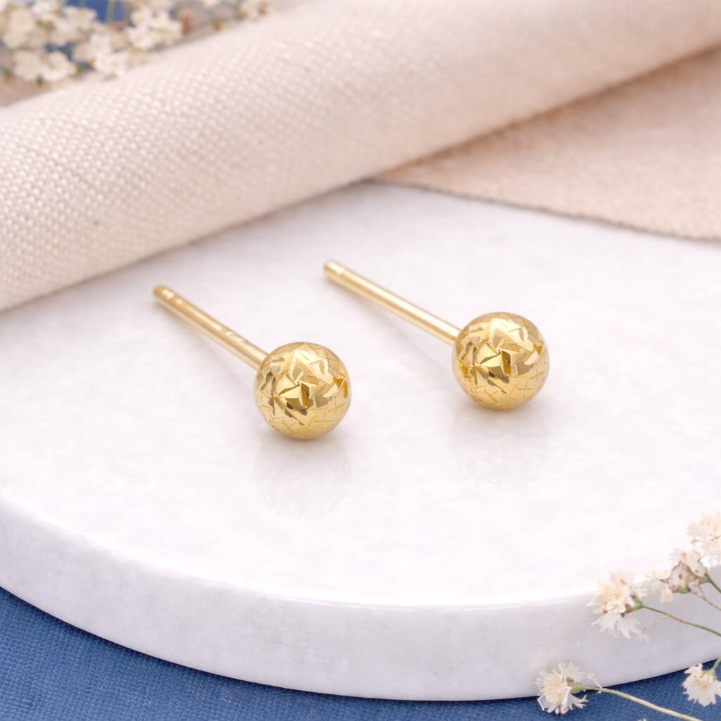 Solid 9ct Gold Diamond Cut Ball Stud Earrings – 7mm