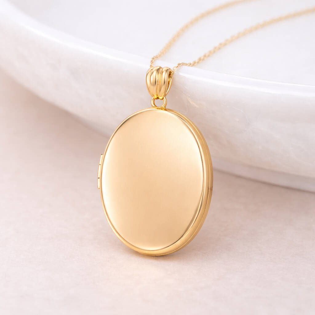 The smooth, high polished surface gives the locket a beautifully clean and classic look, allowing it to reflect light softly while keeping the design elegant and understated. Its generous size makes it perfect for both statement wear and meaningful personalisation.