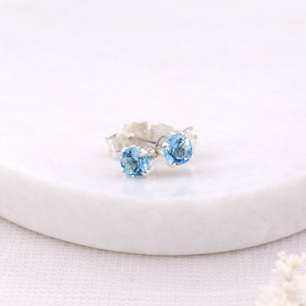 Sterling Silver Aquamarine Micro Stud Earrings – 3mm