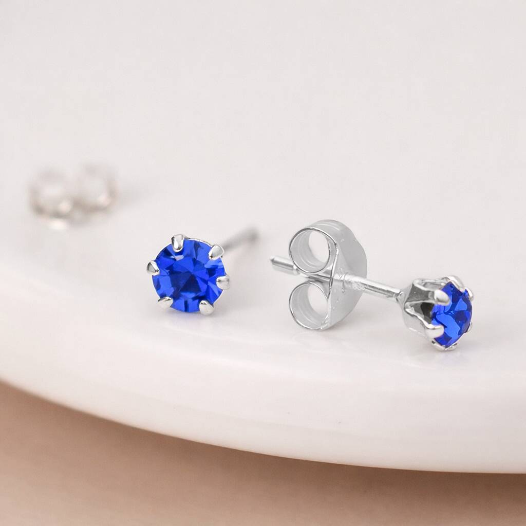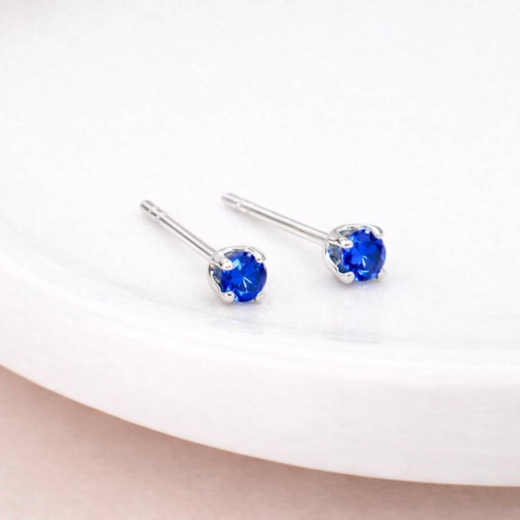 Sterling Silver Sapphire Micro Stud Earrings – 3mm