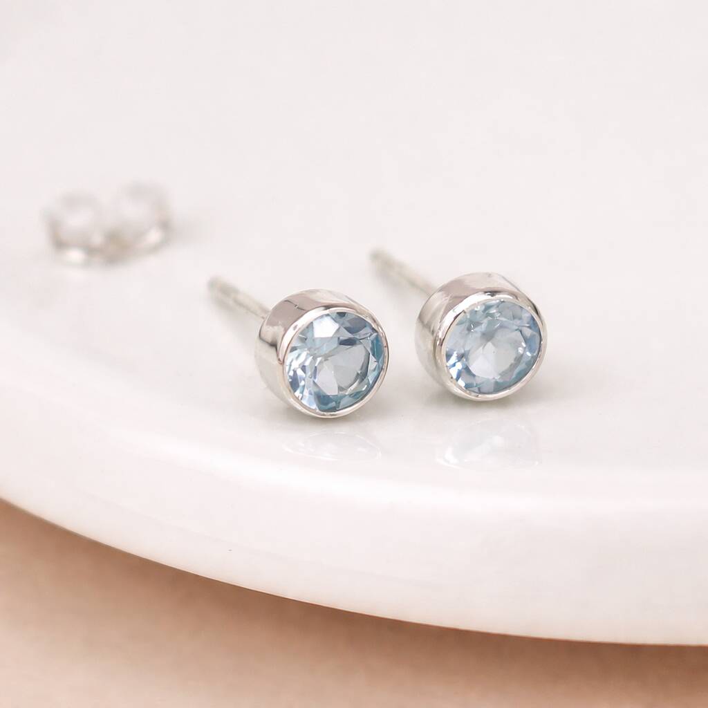 Sterling Silver Blue Topaz Stud Earrings – 5mm