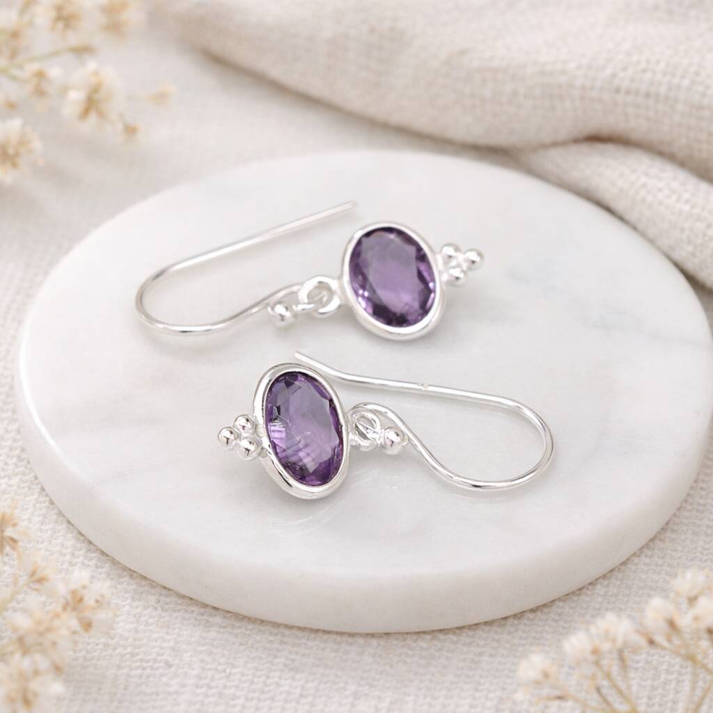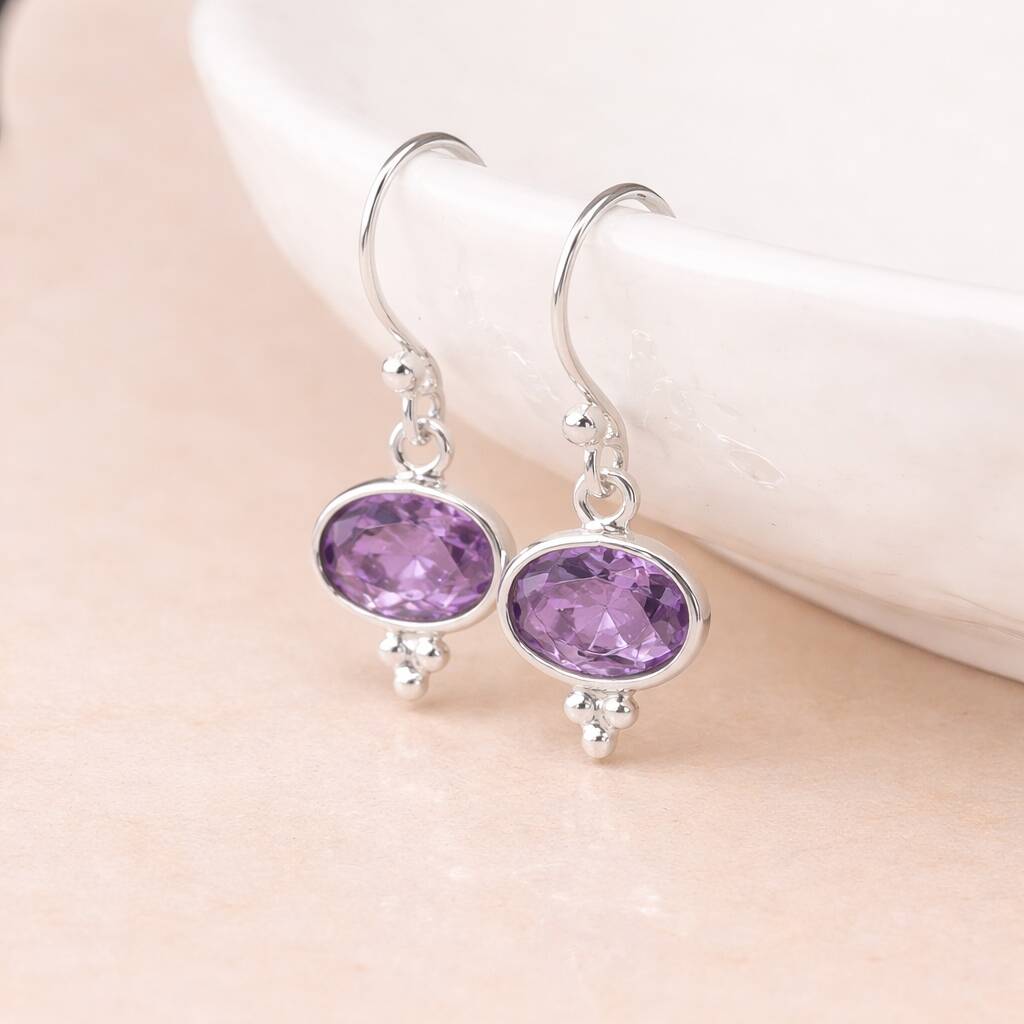 Sterling Silver Amethyst Drop Earrings – 10mm X 8mm