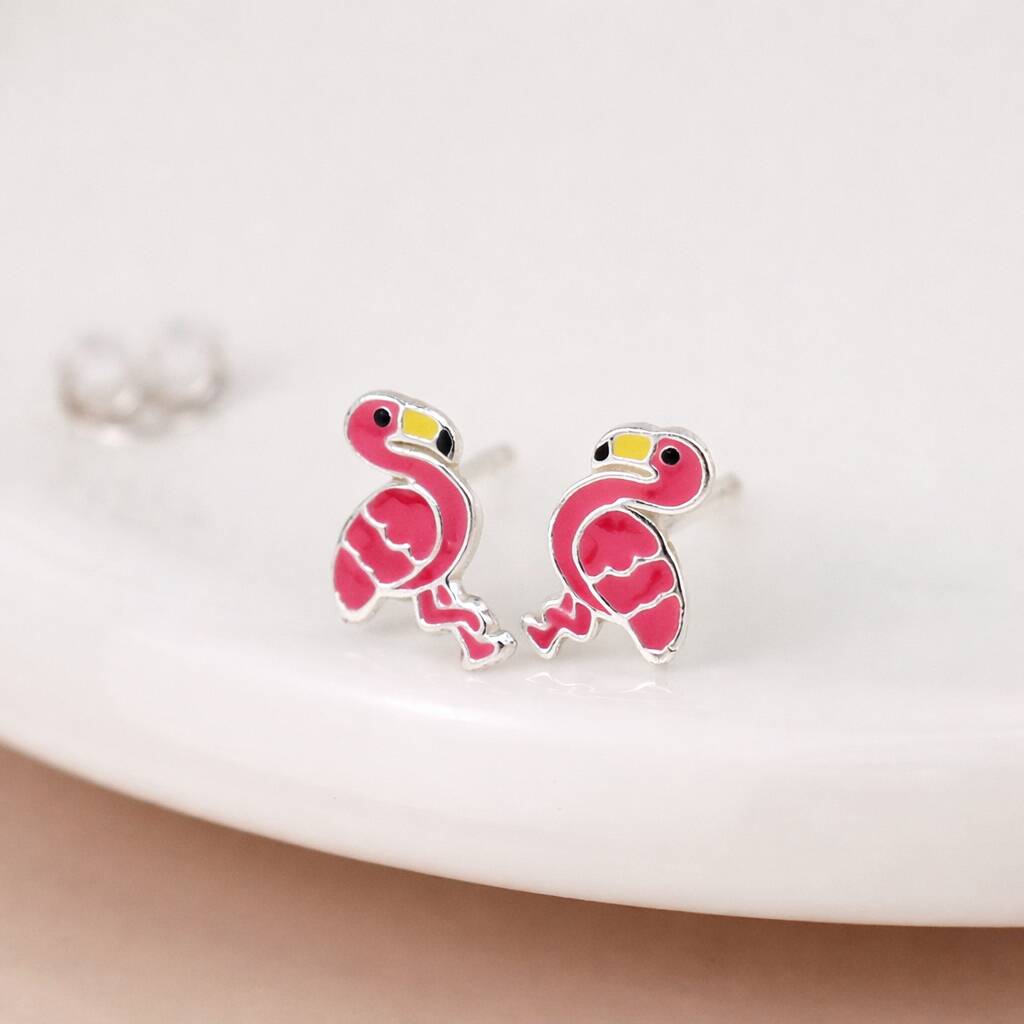Sterling Silver Pink Flamingo Stud Earrings – 10mm X 7mm