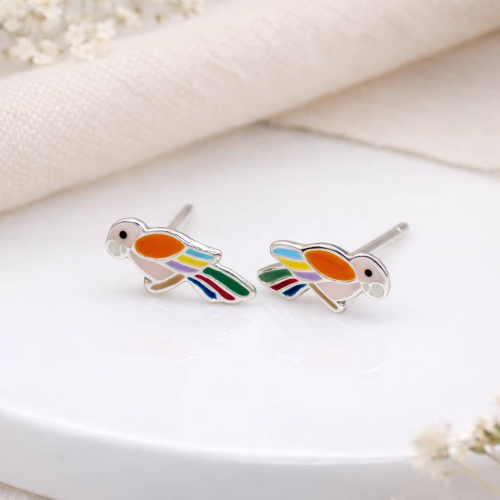 Sterling Silver Parrot Stud Earrings – 10mm X 5mm