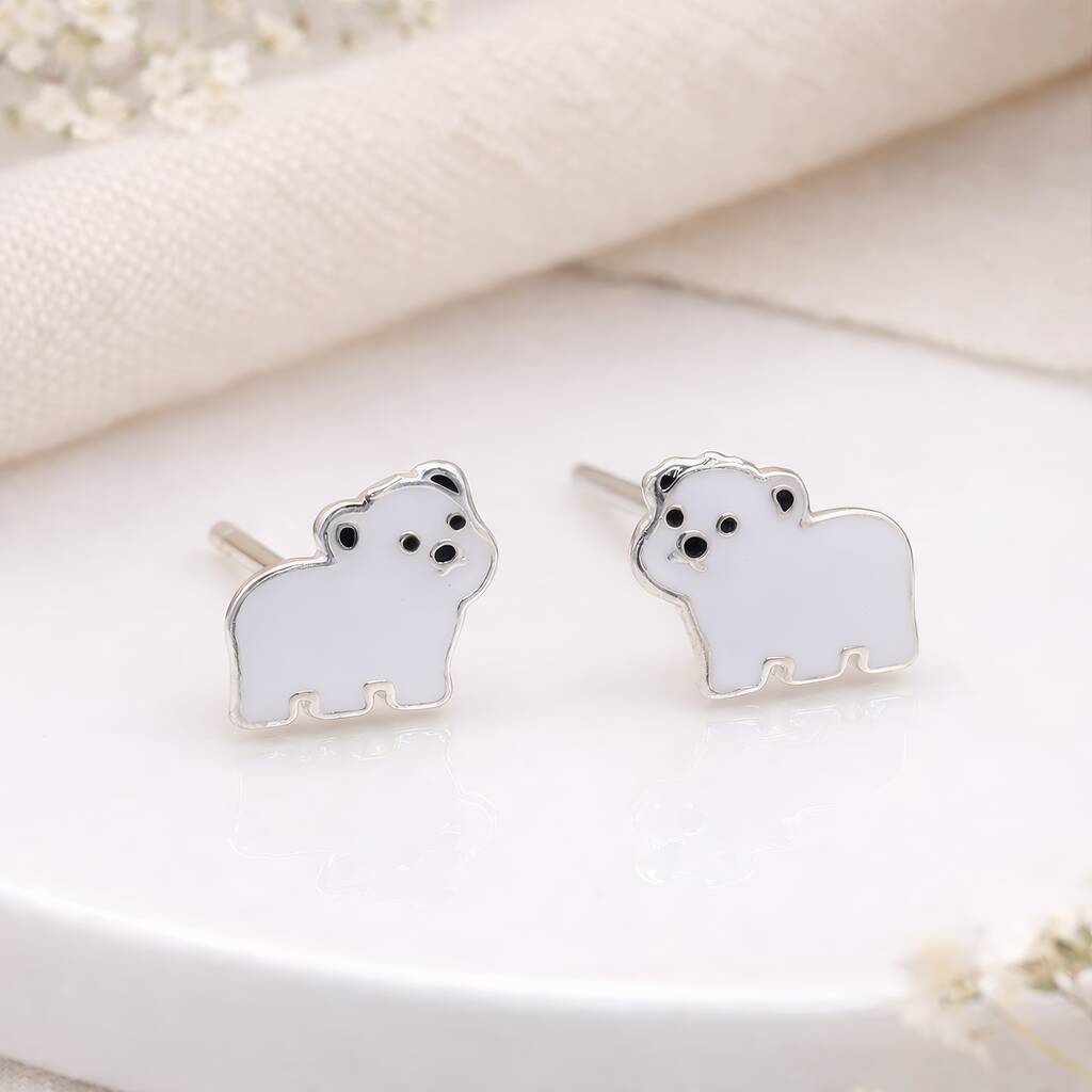 Sterling Silver Polar Bear Stud Earrings – 8mm