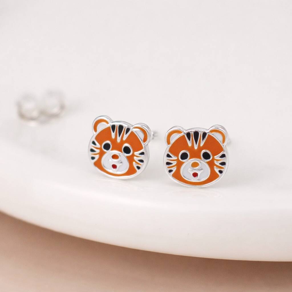 Sterling Silver Tiger Stud Earrings – 8mm X 6mm