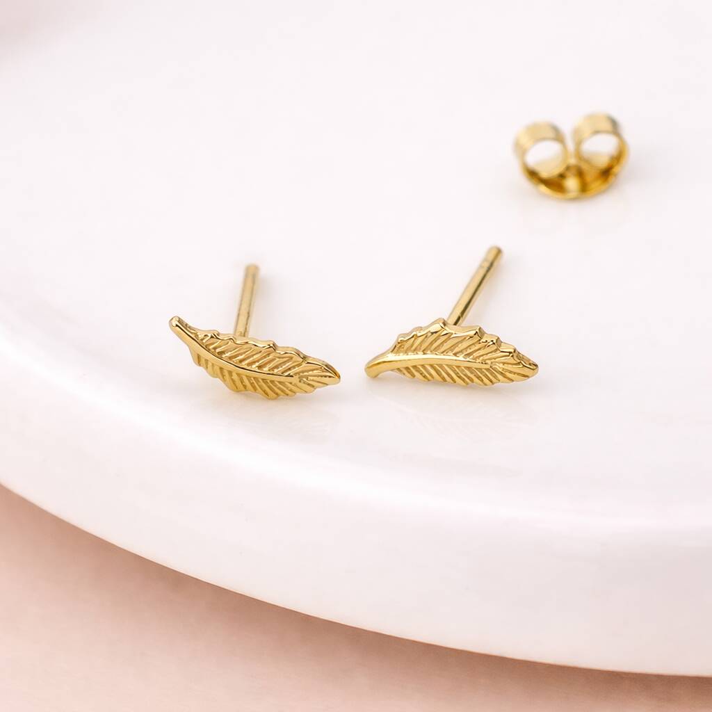 Handcrafted feather stud earrings made from solid 925 sterling silver with 18ct yellow gold plating