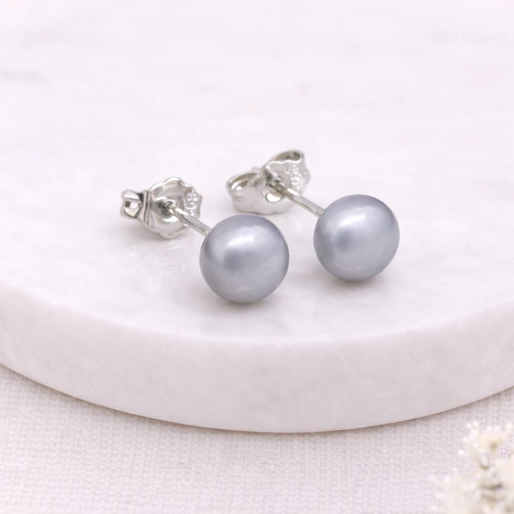 Sterling Silver Grey Freshwater Pearl Stud Earrings – 5mm