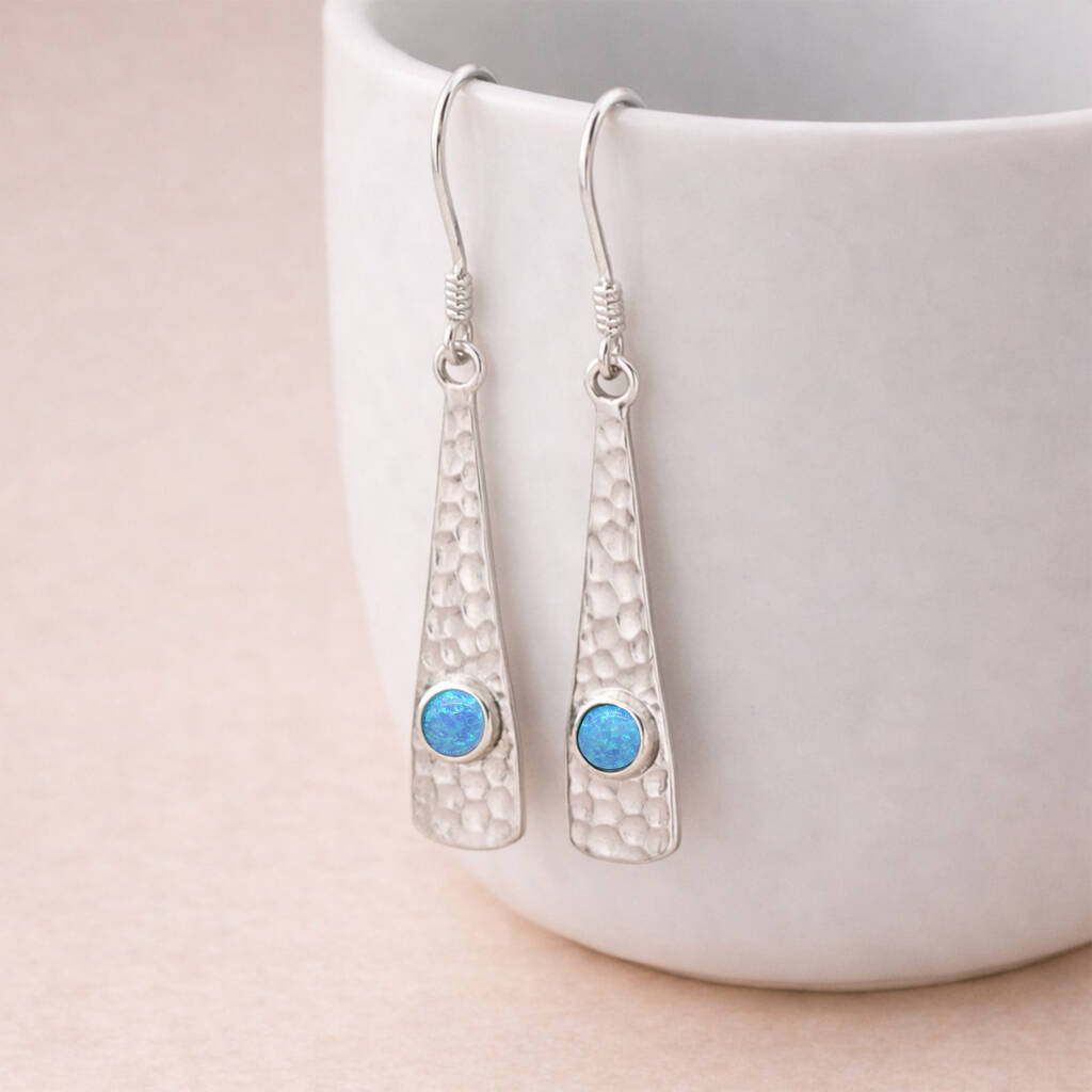 Hammered Sterling Silver Opal Bar Drop Earrings – 9mm