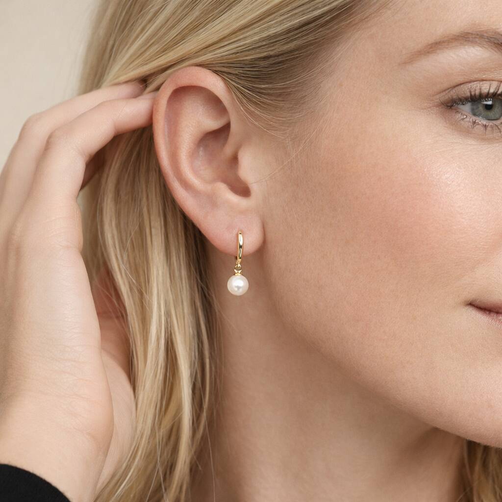 Gold Plated Sterling Silver Freshwater Pearl Huggie Hoop Earrings – 7mm Pearls