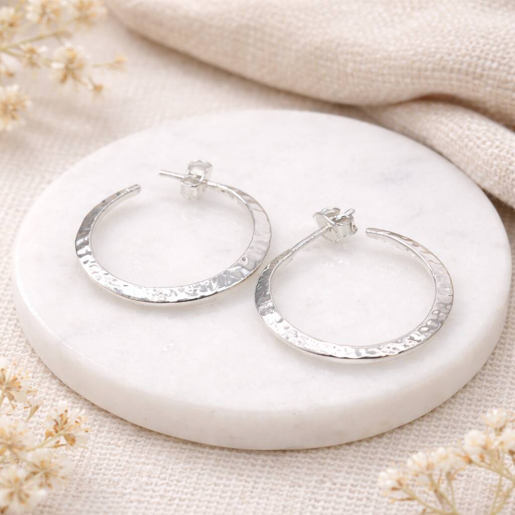 Large Sterling Silver Hammered Hoop Earrings – 27mm