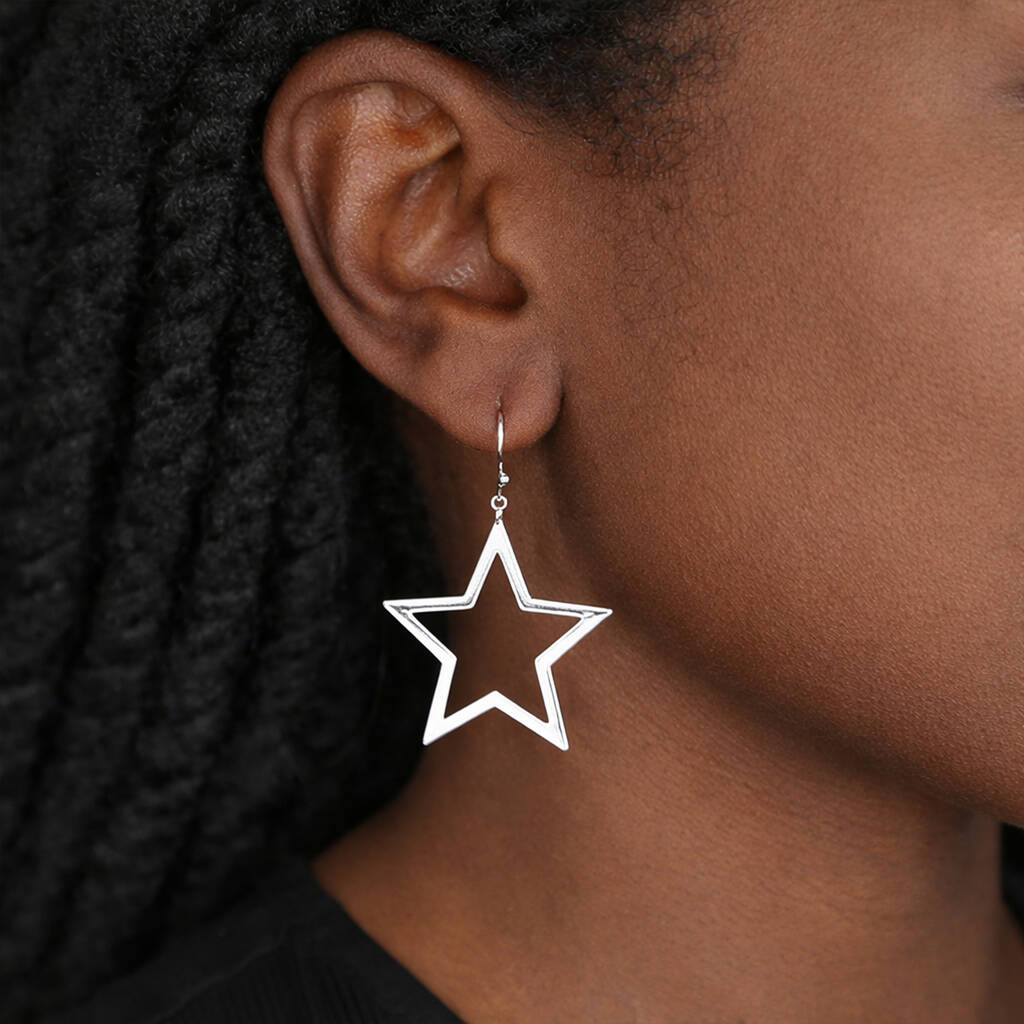 Large Sterling Silver Star Drop Statement Earrings – 20mm