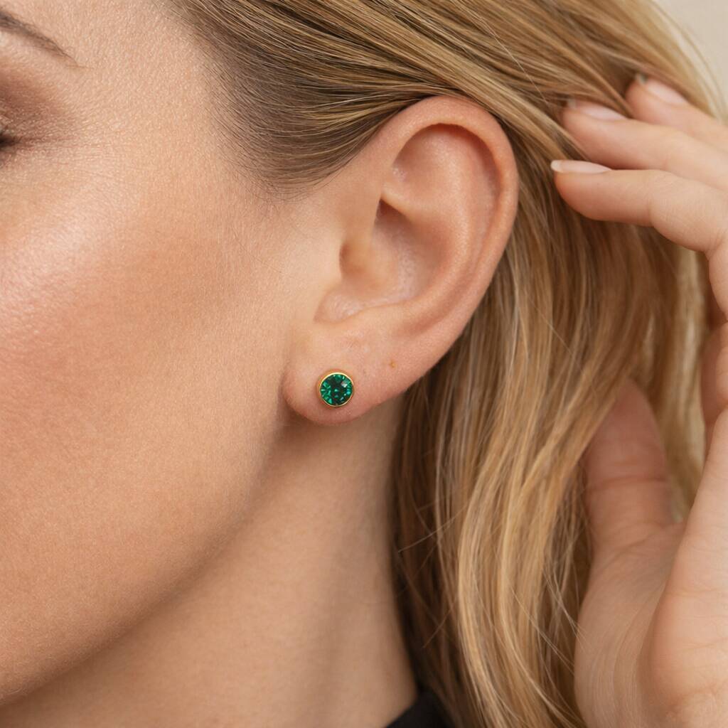 Gold Plated Sterling Silver May Emerald Birthstone Stud Earrings – 7mm