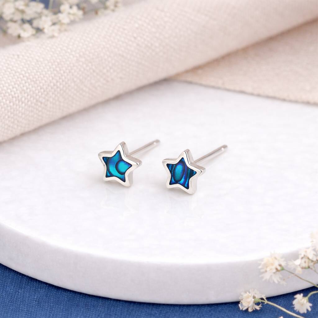 Sterling Silver Paua Shell Micro Star Stud Earrings – 4mm